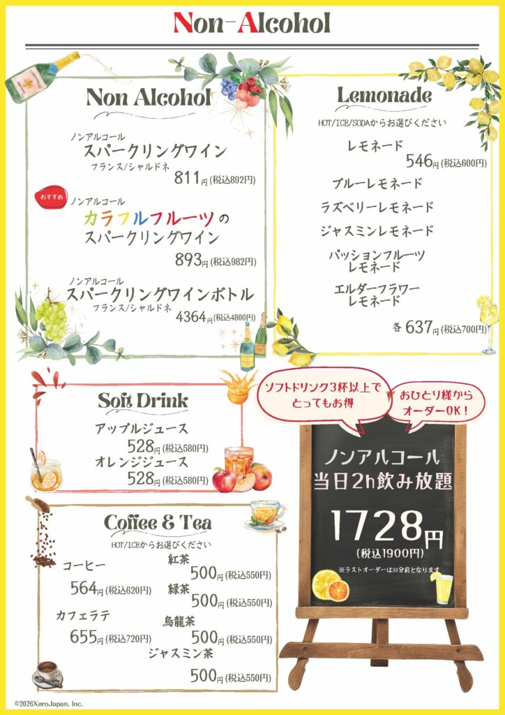 メニュー ※時間帯によって価格が異なる場合がございます。※表示価格は税込みです。 ※掲載の価格は2025年11月時点のものです。原材料価格等の変動により、予告なく変更となる場合がございます。 コースメニューはこちら Reservation ご予約・お問合せはこちらから宴会のご予約も承っております。お気軽にお問合せください。 BOOK A TABLE NOW Telephone Reservations 03-6809-6650